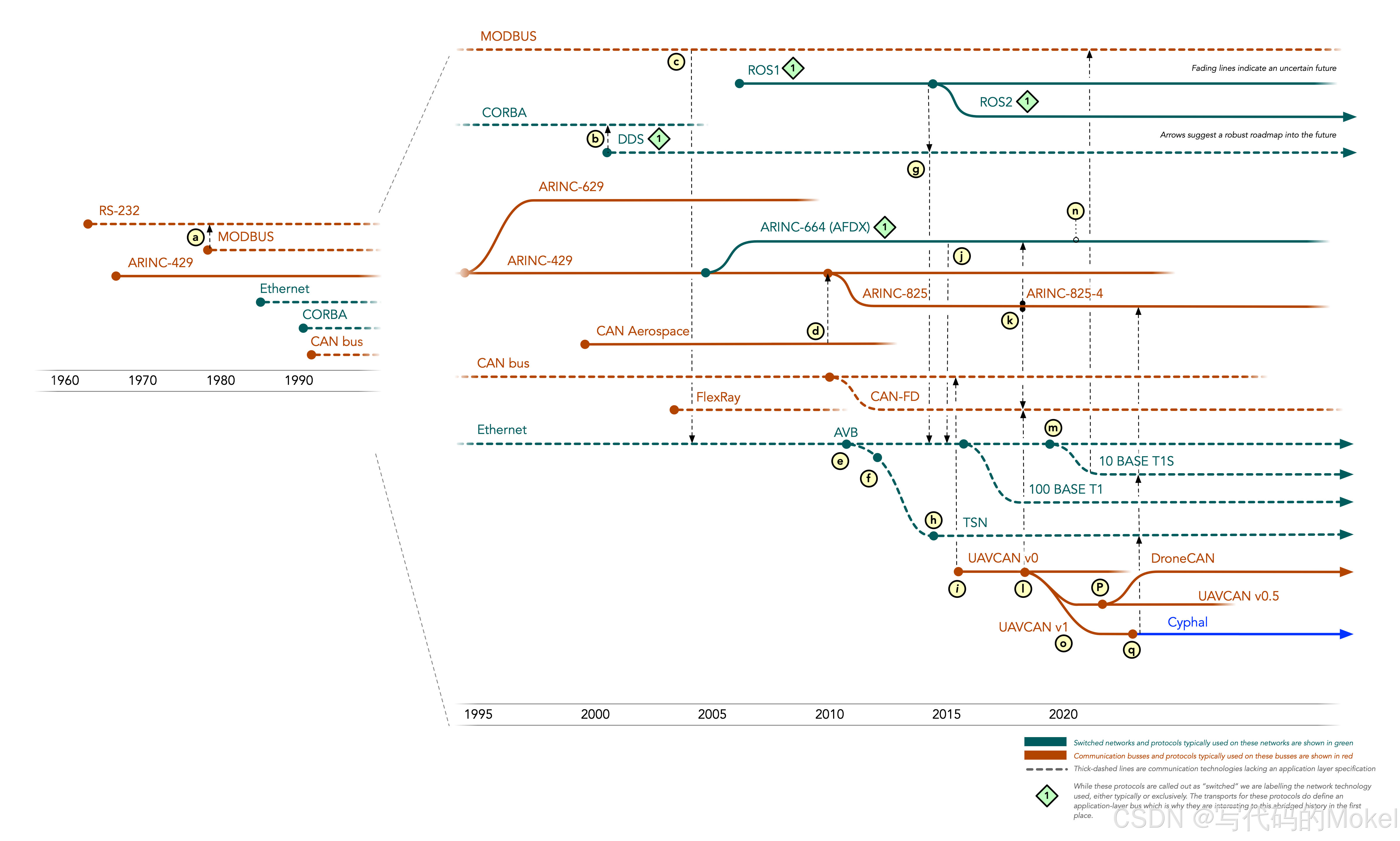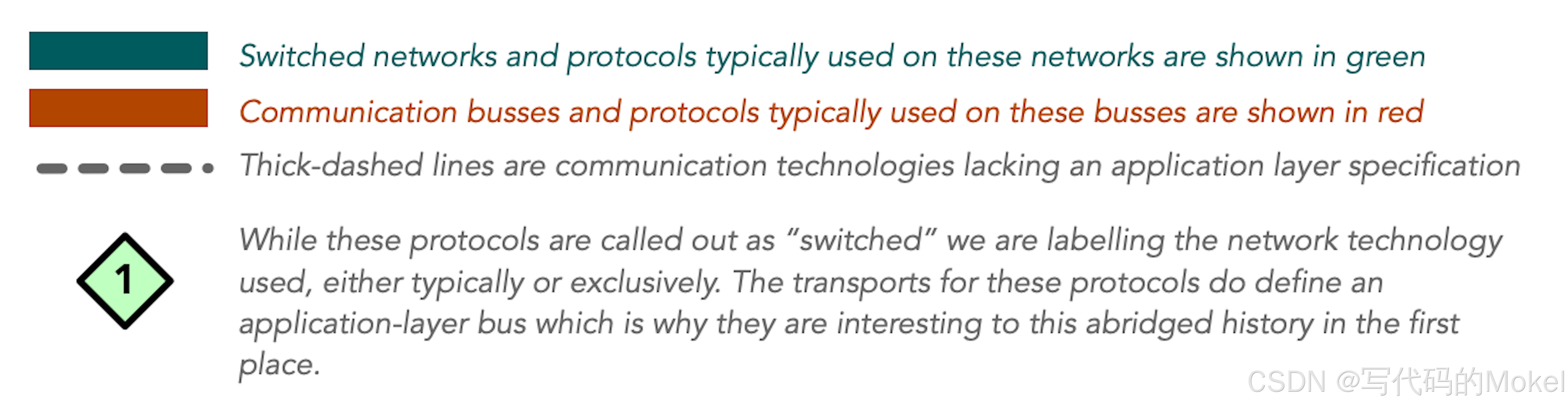 虽然这些协议被称为“交换”,但我们正在标记所使用的网络技术,无论是典型的还是专门的。这些协议的传输确实定义了一个应用层总线,这就是为什么它们首先对这个简化的历史感兴趣。