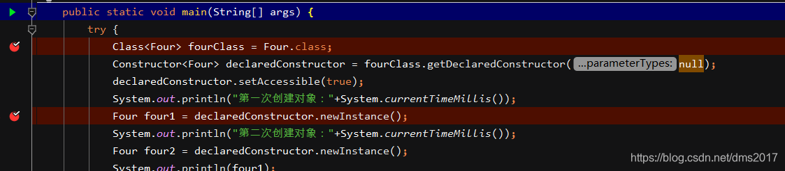 Constructor<Four> declaredConstructor = fourClass.getDeclaredConstructor(null);