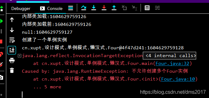 但此代码还有一个问题,如果使用反射强行创建多个对象,这个单例的唯一性还是会被破坏,如下: