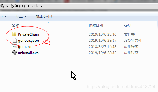 安装完成后就只有两个exe,然后你需要新建一个文件夹privatechain,随意起名,这文件夹里以后包含的就是私有链的数据。