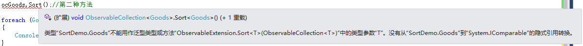 ocGoods.Sort<Goods>();//第二种方法