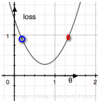 若参数θ上某一点对应梯度为负值(上图蓝点),此时应该增加θ,即给θ加上一个正数来降低loss;
