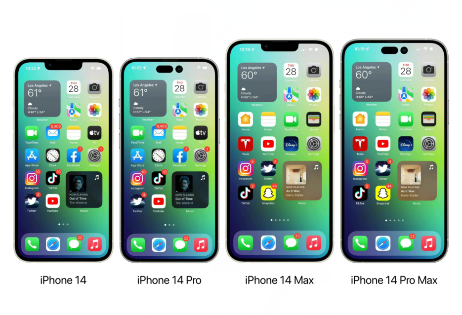 最大的更新只有两款高端旗舰机型,Pro和Pro Max版本可能会换上感叹号屏幕,同时搭载A16处理器,但基础版的两款机型依然是刘海屏,处理器是A15的增强版。