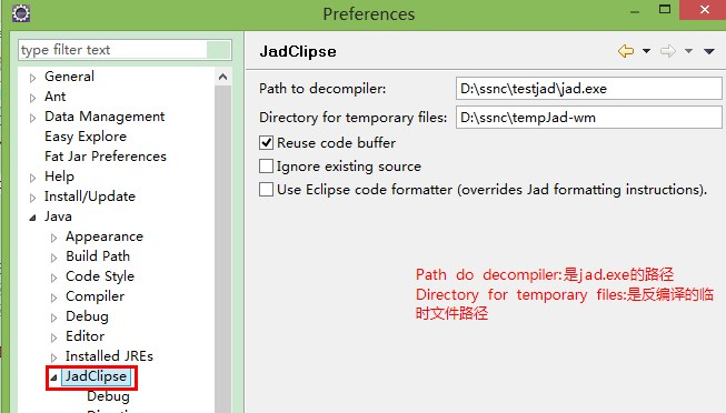 1.下载jad158g.win.zip,解压得到jad.exe,放入D:\ssnc\testjad(自行随便创建,之后再eclipse中引入对应路径即可)。