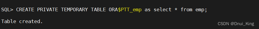 注意:私有临时表 ,表名必须以 ORA$PTT_开头。