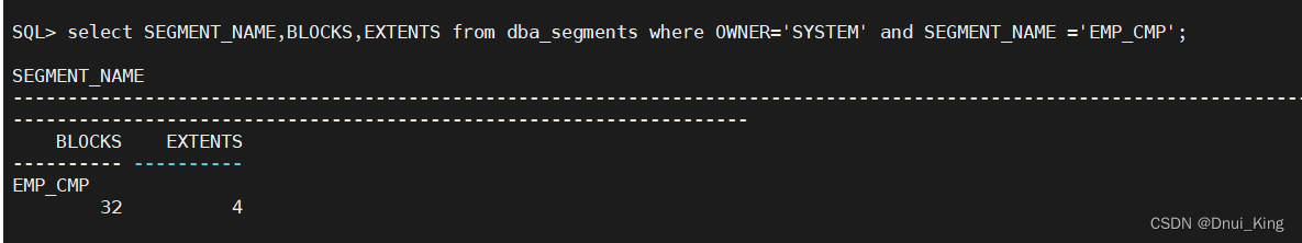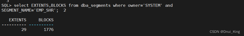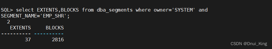 发现此时空间并没有被释放,原因是我们的高水位线并没有变低,只是把行变的紧凑了,没有块被oracle自动回收。