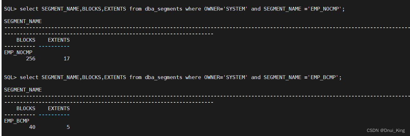 insert into EMP_NOCMP select * from emp_nocmp; (重复 10 次)