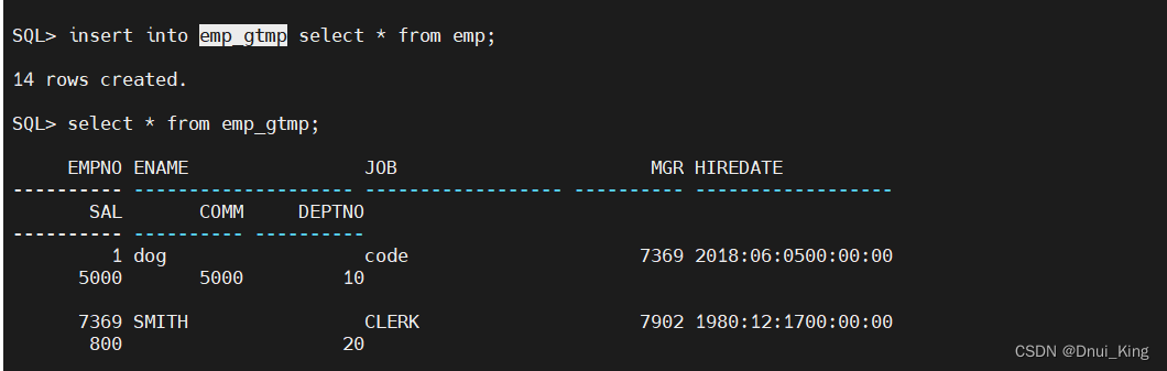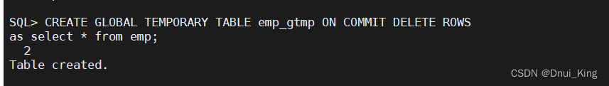 如果我们以后为了测试。表中的数据有没有无所谓,我们可以基于有数据的表建一个临时表,我们在临时表上面进行测试,退出会话时oracle会把这个临时表删掉。