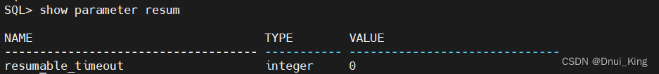 假如我们的操作因为表空间大小不足,设置这个参数后不会立即报错,而是会把这个事务挂起,在300s中,如果我们有补救措施,如resize表空间,增加了数据文件,使得表空间足够进行接下来的操作,该操作将继续进行。
