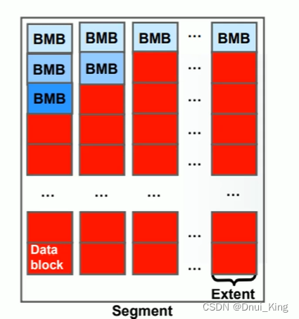 总结一下就是:我们给段分配很多数据块,oracle会拿出一些数据块来记录这些数据块的使用情况,这些数据块叫做:BMB(位图块)。