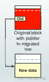 行迁移:原本的行在一个数据块中,如果我们在这一行进行了update操作,使得这一行的尺寸变大了