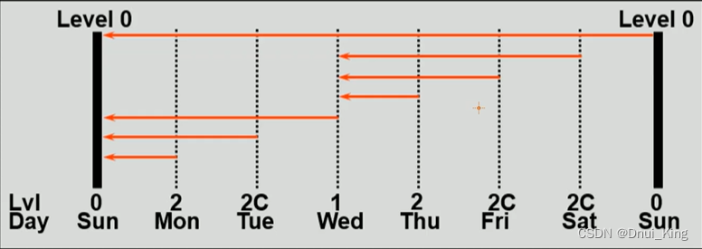 下面两张图可以很好的诠释 累积增量备份和差异增量备份的区别: