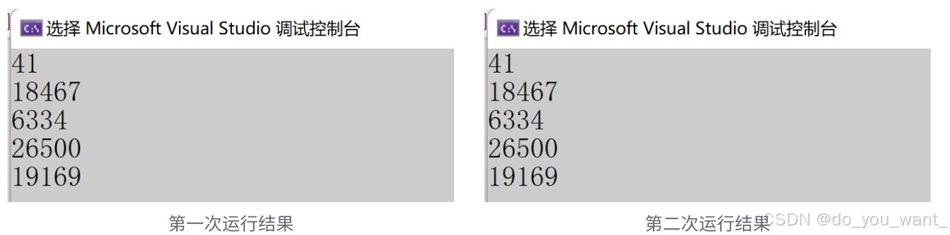 我们可以看到虽然⼀次运⾏中产⽣的5个数字是相对随机的,但是下⼀次运⾏程序⽣成的结果和上⼀次⼀模⼀样,这就说明有点问题。