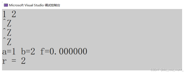 在VS环境中按3次 ctrl+z ,才结束了输⼊,我们可以看到r是2,表⽰正确读取了2个数值。 如果⼀个数字都不输⼊,直接按3次 ctrl+z ,输出的r是-1,也就是EOF