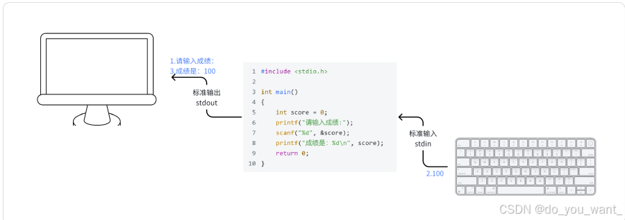 注:标准输⼊⼀般指的就是键盘,标准输出⼀般指的就是屏幕