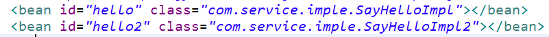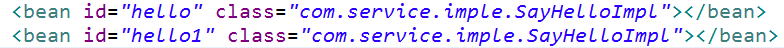 <bean id="hello" class="com.service.imple.SayHelloImpl"></bean>
