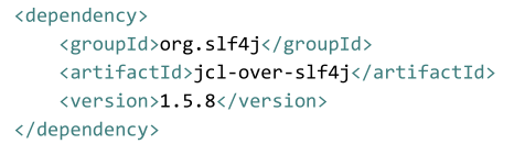 - 添加 jcl-over-slf4j 依赖、slf4j-api 依赖以及 slf4j-log4j12 依赖(都是 compile 范围)——因为排除 commons-logging 后,源码中直接报错,没有需要的类,所以,这些依赖必须加进来。