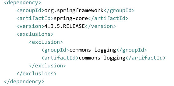 - 从 spring-core 的依赖中排除掉 commons-logging 依赖。