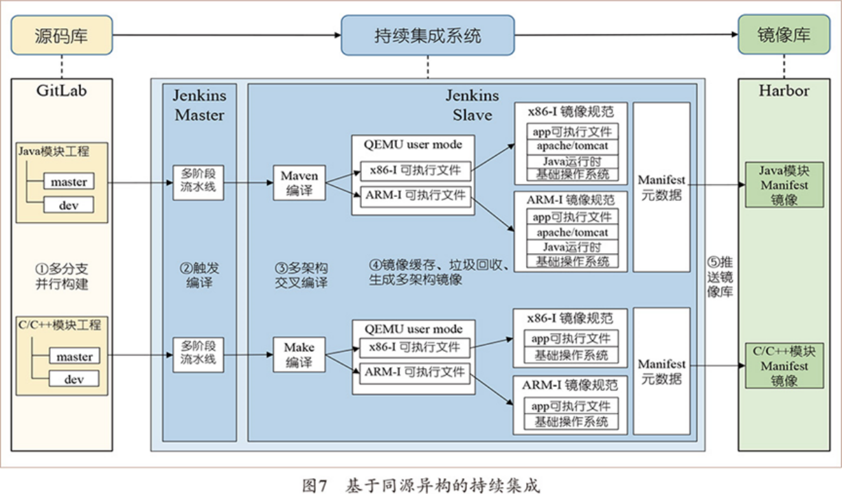 也就是说,基于同一套源代码,针对不同的架构构建不同的容器镜像,如果程序是基于跨平台的语言构建的,则将程序脚本或中间代码与运行时封装为容器;如果程序是基于非跨平台的语言构建的,则可以通过交叉编译,构建各种架构下的二进制文件,然后将其与依赖库等封装为容器,此流程可以通过一套流水线作业自动构建,并推送至镜像库。
