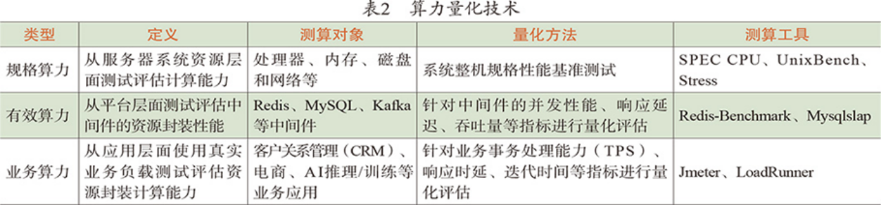 因不同架构的处理器计算能力不同,相同应用即便使用了同等规格的资源封装(例如相同的CPU核心、内存等),在异构环境上运行的性能也存在差异。根据应用场景,算力可分为CPU通用算力和XPU异构算力。一云多芯系统目前面临的主要问题是CPU的多元异构,多厂商的ARM、x86架构处理器在指令集、核心数、生产工艺等方面均有所不同,因此在性能上也存在差异。这种差异性可以通过算力等价关系刻画,根据层次划分为规格算力、有效算力和业务算力(见表2)。