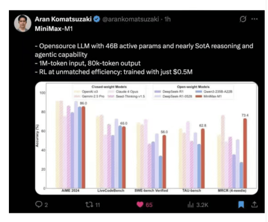 MiniMax-M1发布后在海外引起了开发者的广泛探讨: