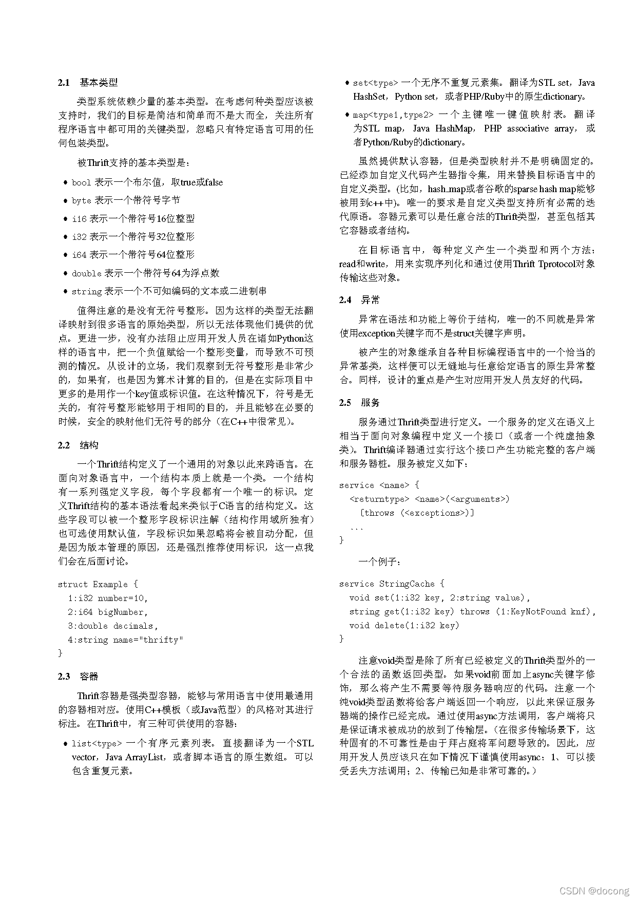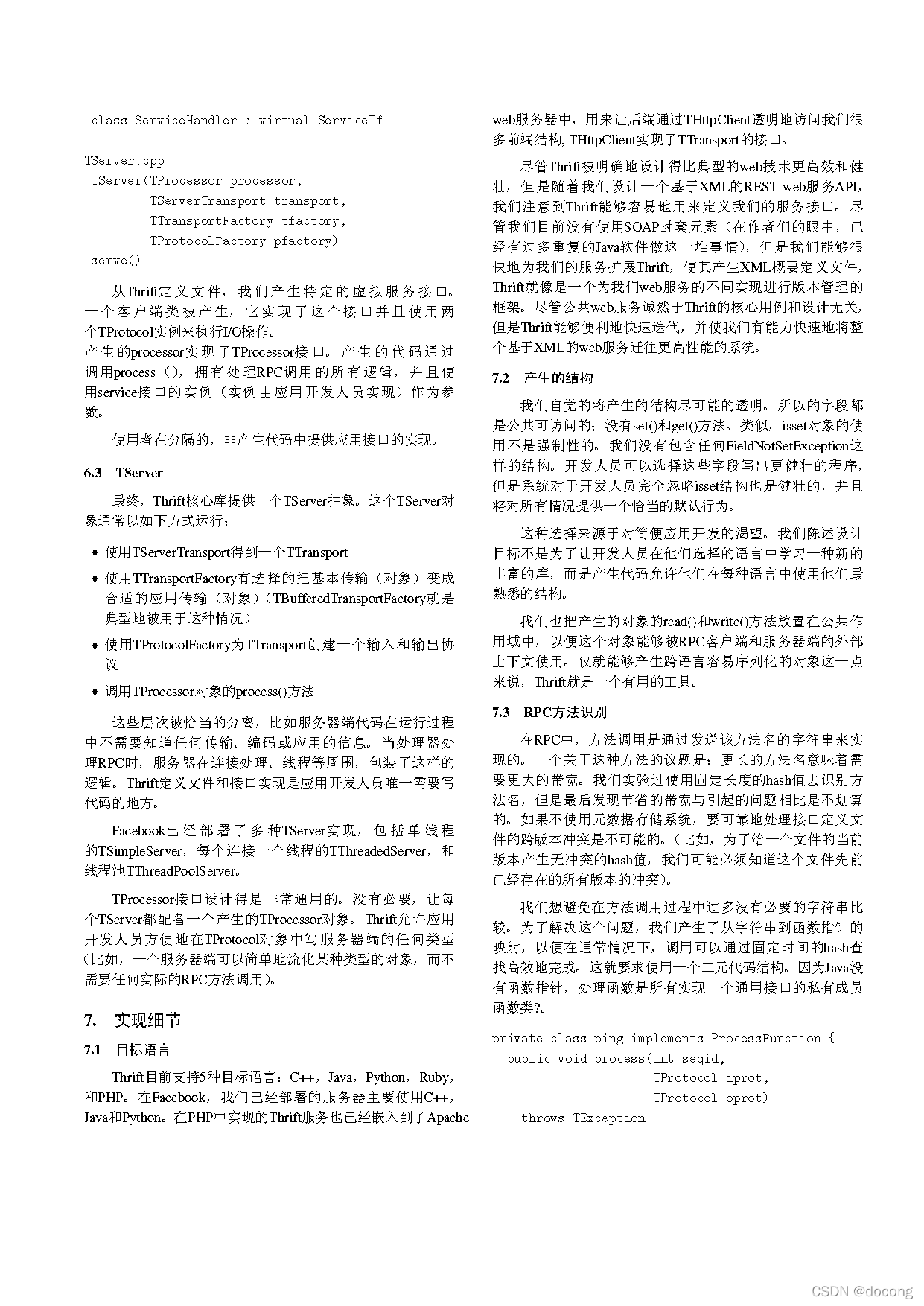 Thrift允许开发者在一个语言中立性文档中定义数据结构和服务,并产生构建RPC客户端和服务器端的所有必需代码。"——《Thrift:可扩展的跨语言服务实现》摘要