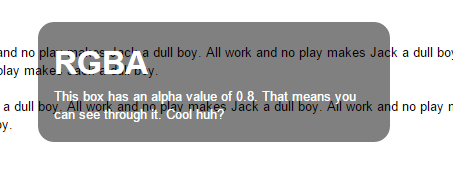 rgba()的用法是,里面输入4个值,前三个是rgb()颜色值,最后一个是透明度,0到1之间,1不透明,0全透明。