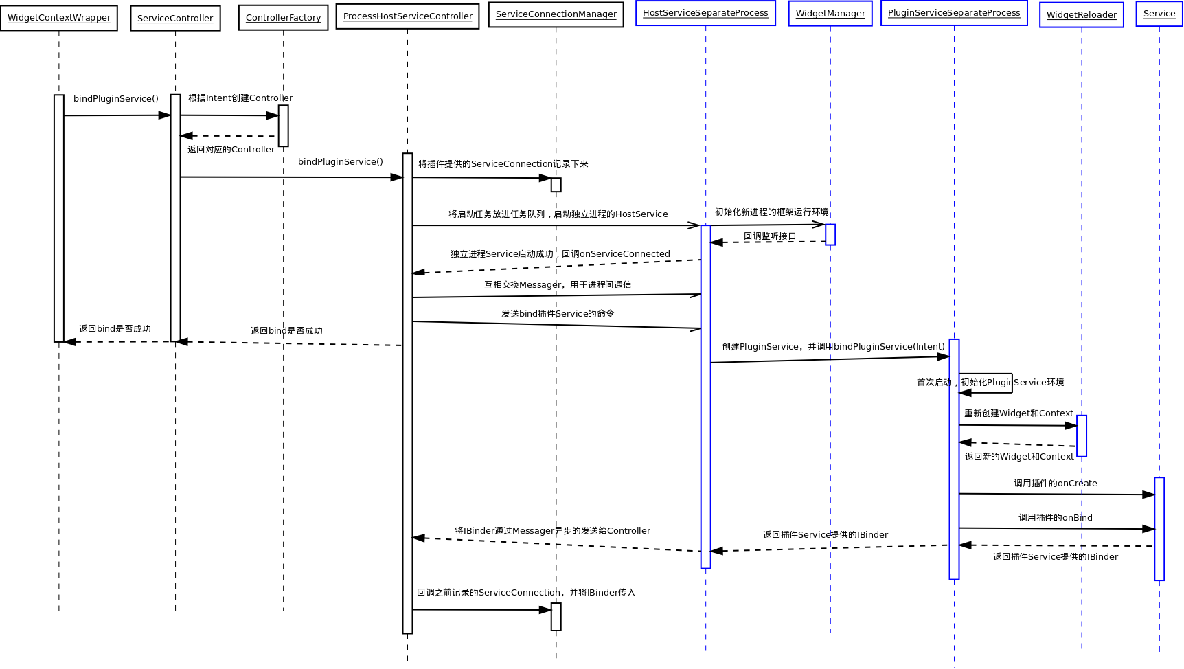 启动独立进程插件Service要麻烦一些,请看流程图: