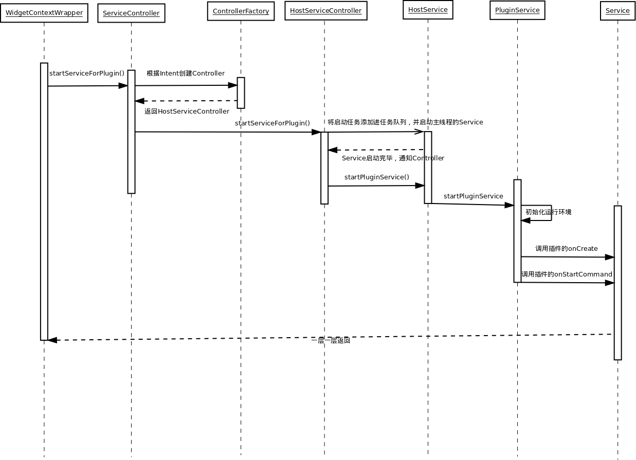 了解了框架支持Service的基本结构,我们看下启动插件非独立进程Service的流程:
