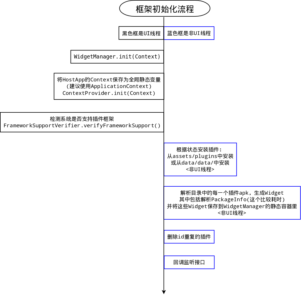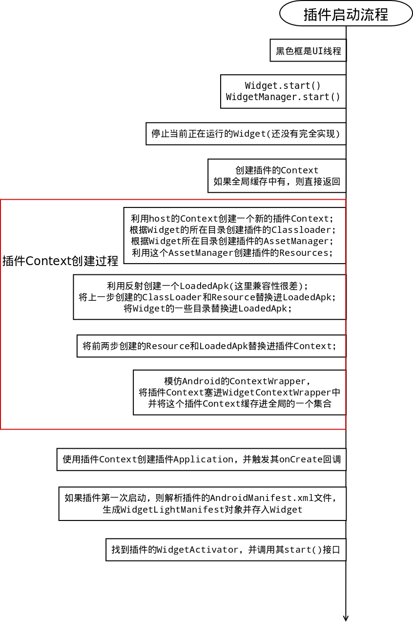 框架初始化后,就该启动插件了,下图是插件的启动流程: