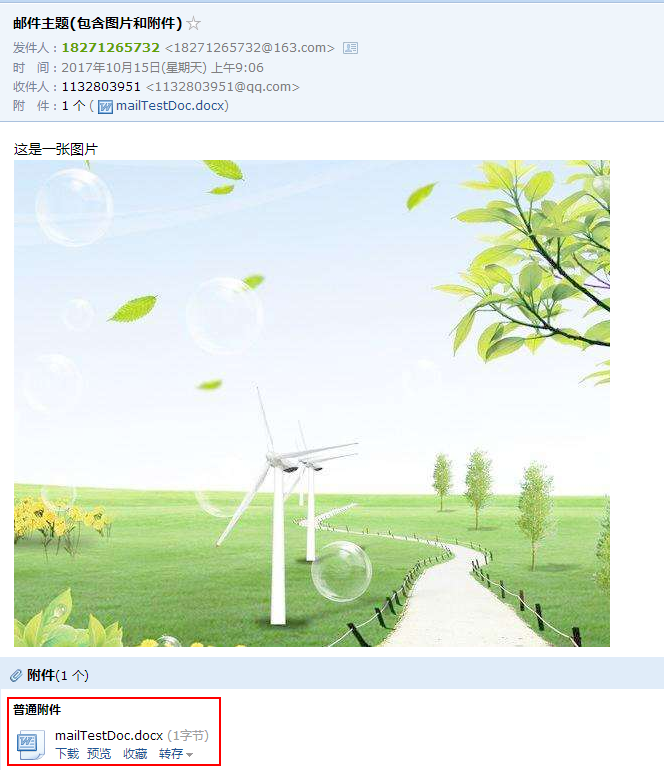 那么一封包含图片(点击图片跳转到指定超链接),和附件的邮件就生成了。