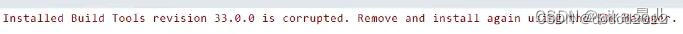 已安装的构建工具33.0.0版本已损坏。删除并使用SDK Manager重新安装。