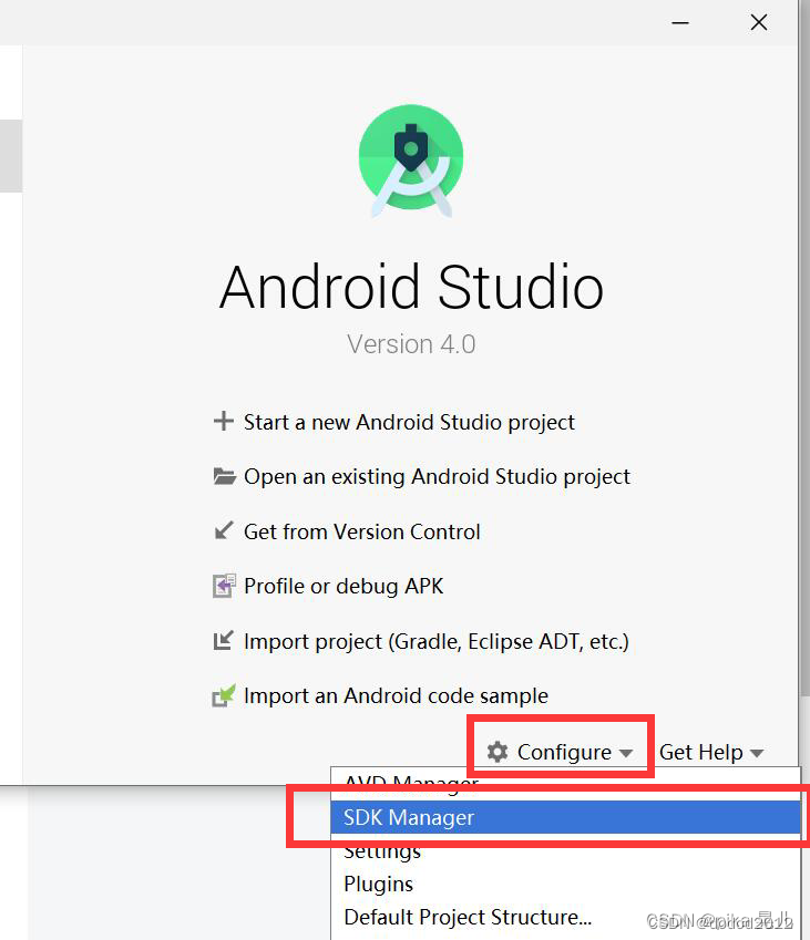 1.关闭项目回到首页 ,点击Configure-->SDK Manager