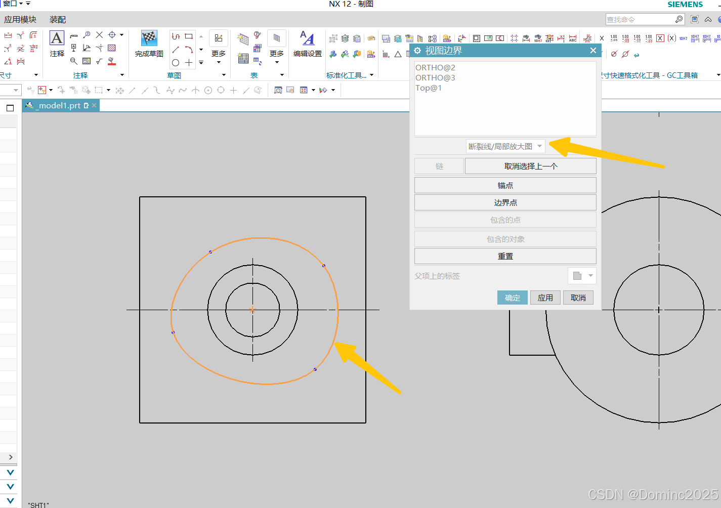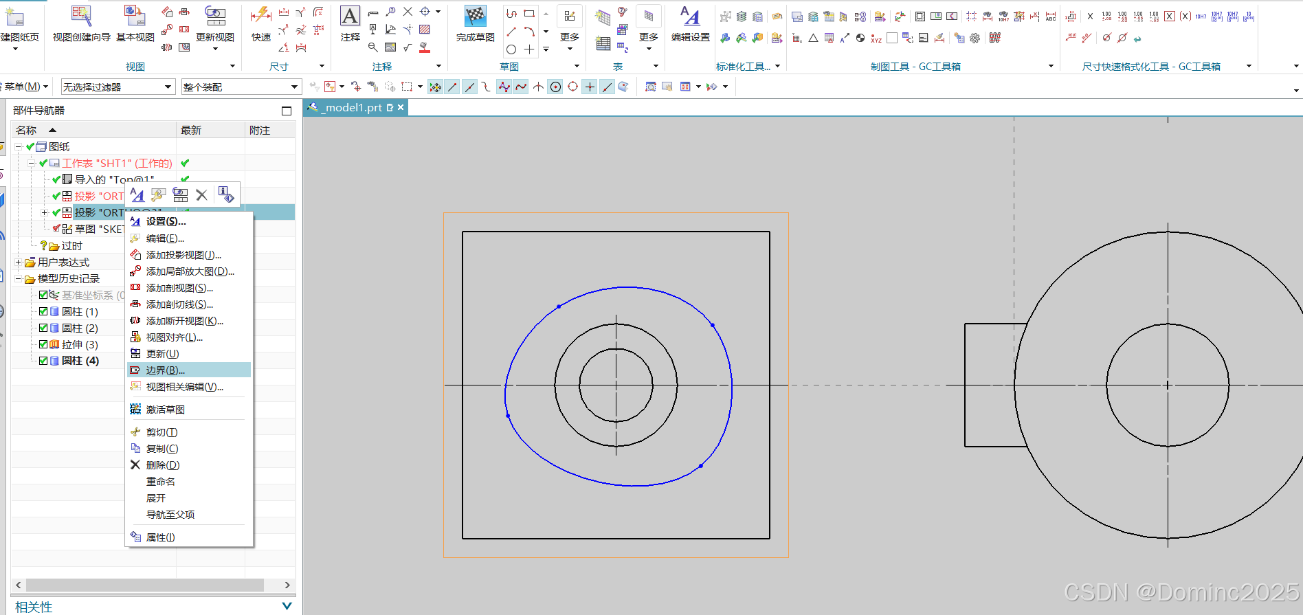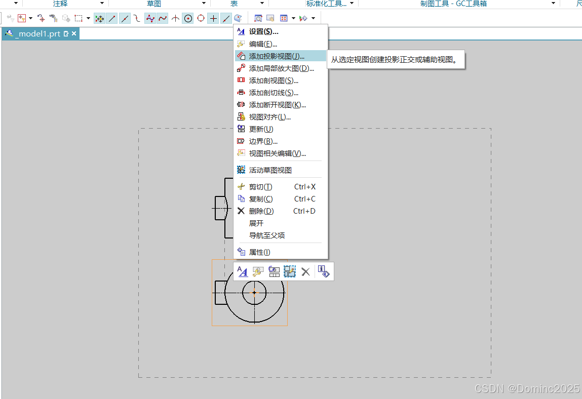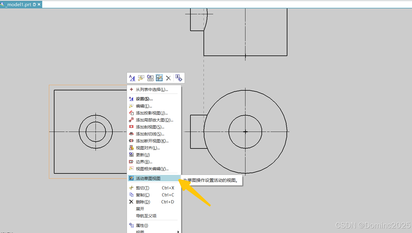 绘制模型 利用基本视图和投影视图创建视图 利用投影视图命令选择想要投影向视图的方向,生成向视图,但是需要处理边界 右键选择向视图的活动草图命令,利用样条曲线命令绘制一个封闭曲线 在左侧向视图上右键选择边界命令 选择断裂线/局部放大图,然后选中封闭曲线即可确定生成局部向视图