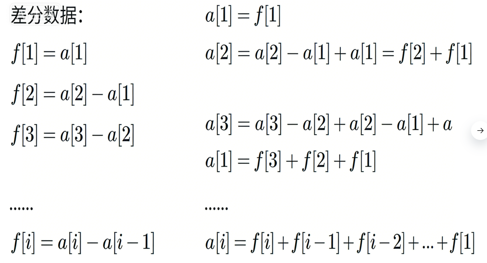 由差分数组的定义得: 原数组a 中的每⼀项: