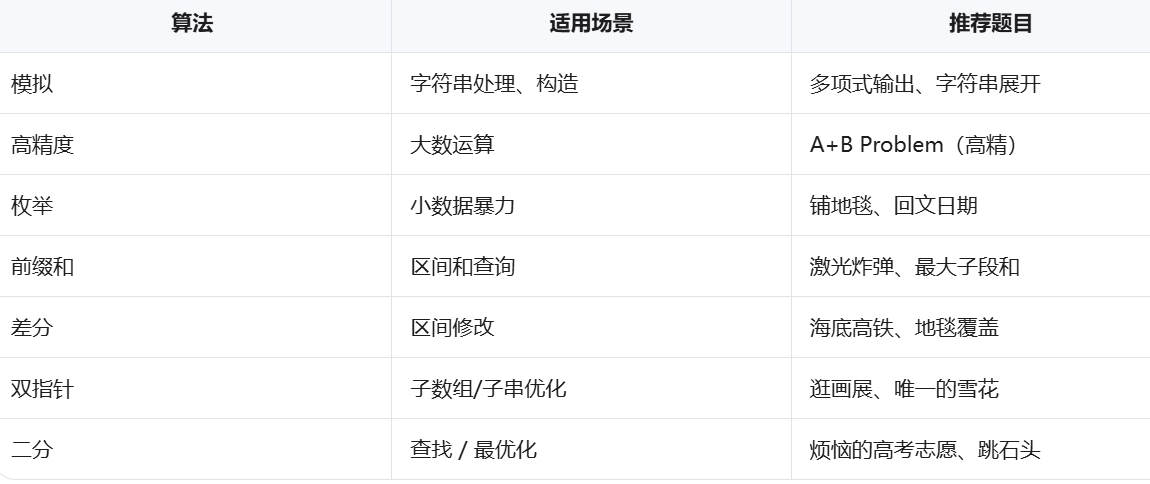 本文是《算法基础篇》第 1 篇博客,用 原理 + 例题 + 代码 + 易错点 四步法,带你系统掌握 模拟、高精度、枚举、前缀和、差分、双指针、二分 七大基础算法。