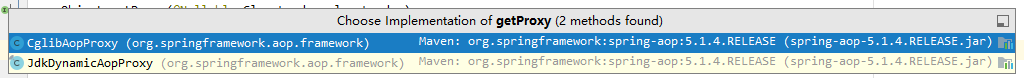 可以看到分为两种创建代理类的方式,分别是jdk和cglib,选择jdk的方式看下