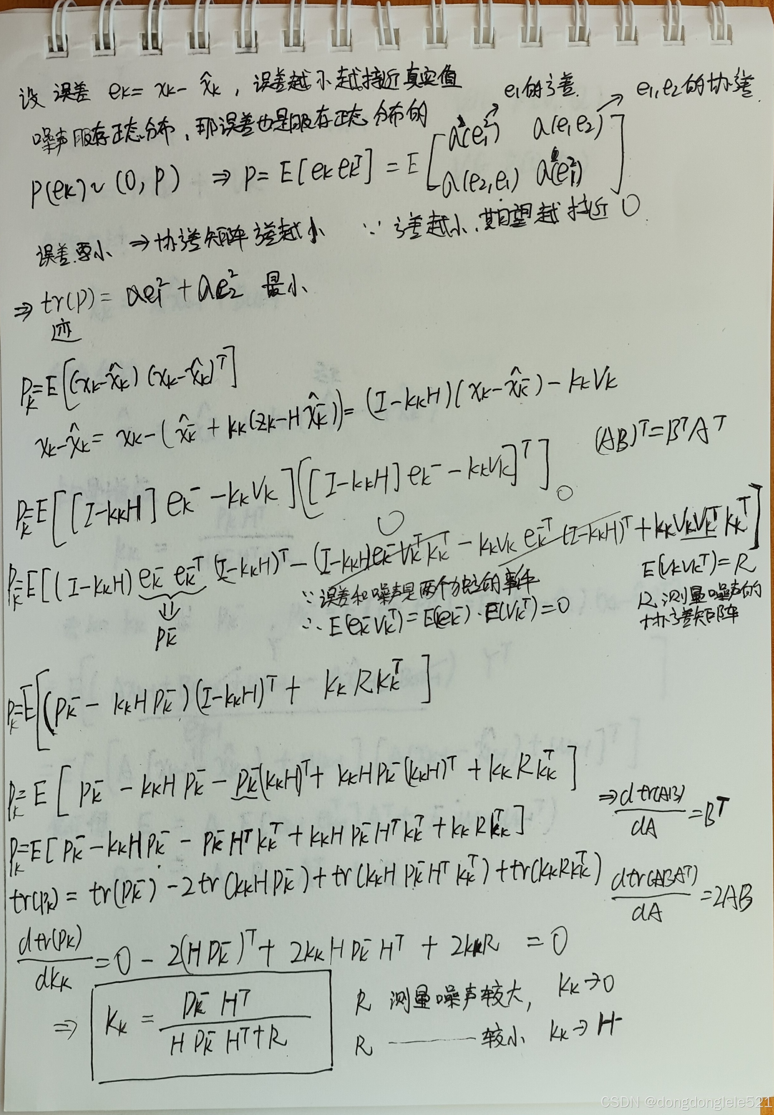 公式推导完毕,从上述公式我们明白,能用卡尔曼滤波解决问题的前提条件: