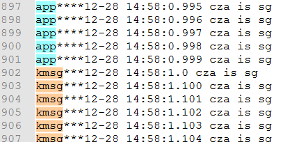 def restoreFile(filename): # 根据log内容做定制,取特定时间信息 start = filename.find('.') fileTime = filename[start+1:start+9] timeFormat = '%Y%m%d' time = datetime.datetime.strptime(fileTime,timeFormat) if filename.find('app-log') >= 0: appLog[time] = filename elif filename.find('kmsg-log') >= 0: kmsgLog[time] = filename else: print('there exist one error!') sys.exit() def mergeApp(testPath, problemTime, searchRange): # 合并app-log appList = [] # 以列表形式存储log内容 for index,filename in sorted(appLog.items(), key=lambda x: x[0], reverse=False): filename = os.path.join(testPath, filename) with open(filename,'r') as fr: context = fr.readlines() appList.append(context) with open(resultPath,'w') as fw: for context in appList: # 此处内容为列表 --BUG? for temp in context: # 故二次遍历 end = temp.find(' ', temp.find('.')) lineTime = temp[:end] # 7是定制时定义好的距离 if (datetime.datetime.strptime(lineTime,TIMEFORMAT) \ - problemTime).seconds <= int(searchRange): temp = 'app****' + temp fw.write(temp) else: pass def mergeKmsg(testPath, problemTime, searchRange): # 合并kmsg-log kmsgList = [] for index,filename in sorted(kmsgLog.items(), key=lambda x: x[0], reverse=False): filename = os.path.join(testPath, filename) with open(filename,'r') as fr: context = fr.readlines() kmsgList.append(context) with open(resultPath,'a') as fw: for context in kmsgList: for temp in context: end = temp.find(' ', temp.find('.')) lineTime = temp[:end] # 7是定制时定义好的距离 if (datetime.datetime.strptime(lineTime,TIMEFORMAT) \ - problemTime).seconds <= int(searchRange): temp = 'kmsg***' + temp fw.write(temp) else: pass def merge(): # 将app-log与kmsg-log混合合并,以时间排序 logDict = {} with open(resultPath,'r') as fr: content = fr.readlines() with open(resultPath,'w') as fw: for line in content: end = line.find(' ', line.find('.')) # 找出完成的时间段 time = line[7:end] time = datetime.datetime.strptime(time, TIMEFORMAT) logDict[time] = line for key,line in sorted(logDict.items(), key=lambda x:x[0], reverse=False): fw.write(line) print('merge done!') def mergeLog(testPath, problemTime, searchRange): # API,合并函数入口 ap_count,kmsg_count = 0,0 for DIR,files,filenameList in os.walk(testPath): for filename in filenameList: if filename.find('app-log') >= 0: restoreFile(filename) ap_count += 1 elif filename.find('kmsg-log') >= 0: restoreFile(filename) kmsg_count += 1 else: pass # 判断字典内容是否为空,为空则表示物对应目标文件 if appLog and kmsgLog is not None: print('restore done') else: print('not find aim log file') sys.exit() # 合并log文件 problemTime = datetime.datetime.strptime(problemTime, '%m-%d %H:%M:%S') try: mergeApp(testPath,problemTime,searchRange) # 合并app-log mergeKmsg(testPath,problemTime,searchRange) # 合并kmsg-log merge() # 针对ap,kmsg,进行混合合并,按时间顺序排序 except: print('merge error') sys.exit() return ap_count,kmsg_count # 内部测试 if __name__ == '__main__': testPath = os.path.join(os.path.split(os.getcwd())[0], 'test') problemTime = '12-30 14:58:0' searchRange = 300 # 5min is 300s mergeLog(testPath, problemTime, searchRange)