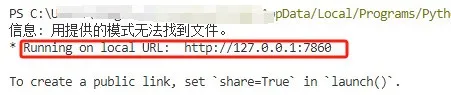 当代码运行后,gradio 库会提示网页部署的本地链接信息,如下:
