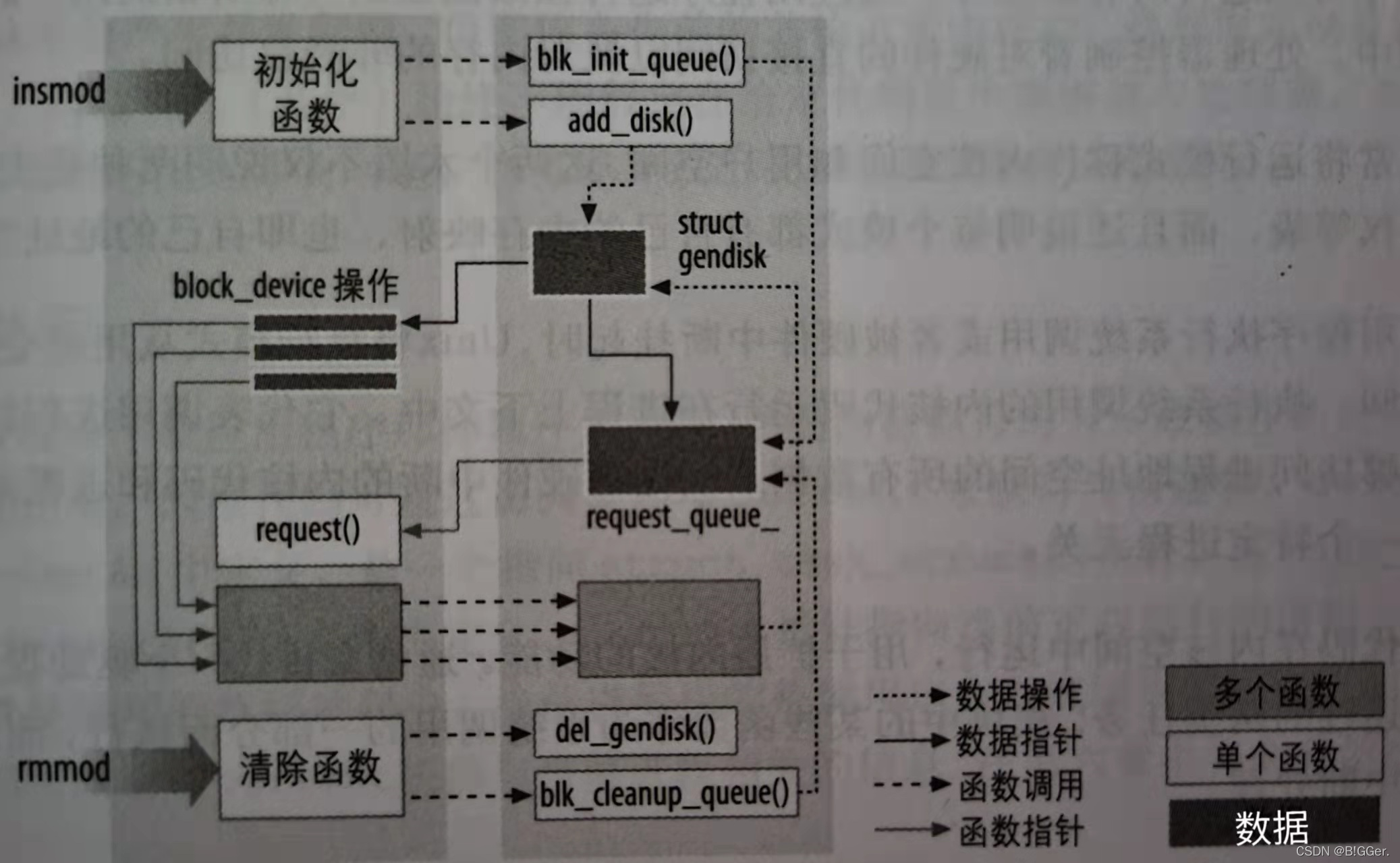 一个驱动程序要执行两类任务:模块中的某些函数作为系统调用的一部分而执行,而其他函数负责中断处理。当应用程序执行系统调用或被硬件中断挂起时,Unix将执行模式从用户空间切换到内核空间。