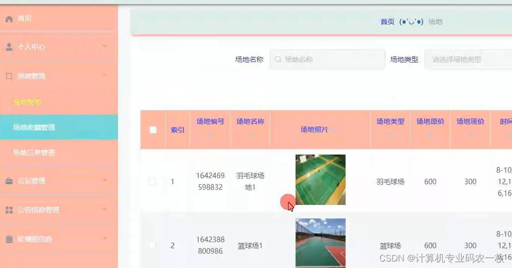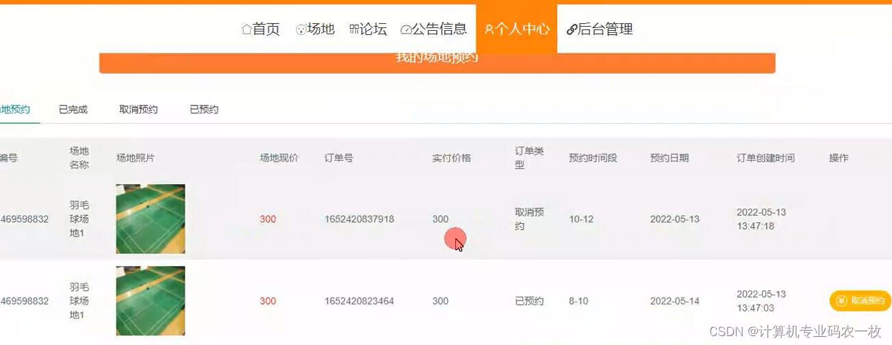 实现对用户进行了预约的场地进行增加、修改、删除、查询功能。