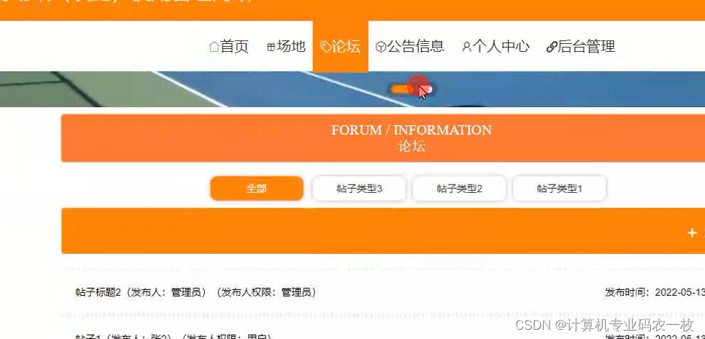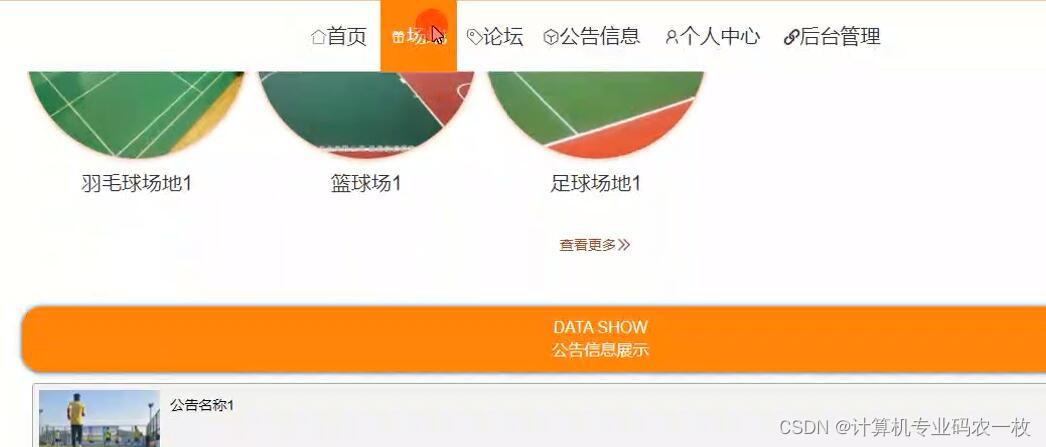 网站主要包括管理员和用户两个部分,用户可以登录与注册自己的基本信息、查询哪些场地可以使用、提前预约场地、取消预约的场地、使用完场地后进行缴费。管理员可以审批用户的注册信息、对用户信息进行增删改查、查询场地的使用情况、管理场地的使用信息、和用户进行交流管理沟通、管理用户信息。