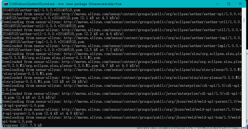 之后我们用cmd打开,mvn clean package -Dmaven.test.skip=true,打成jar包