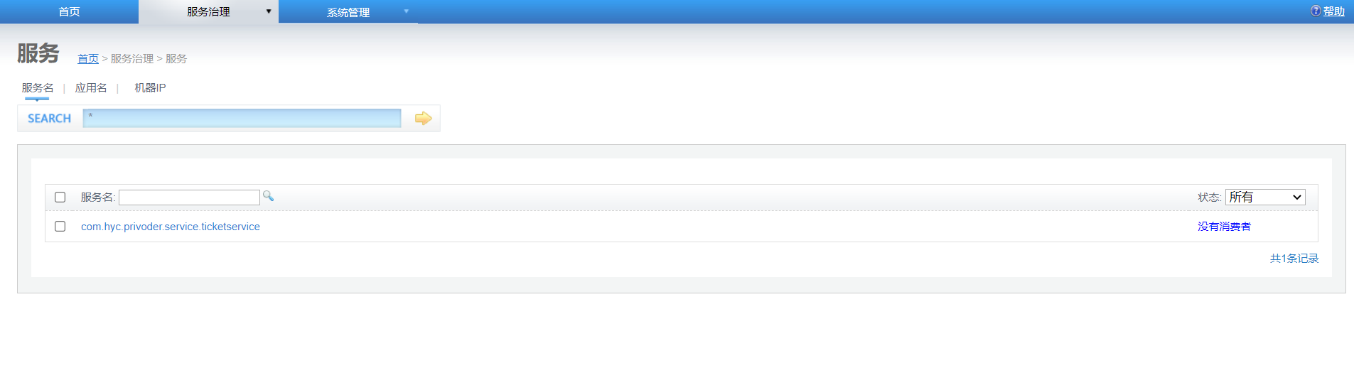 下载好之后,这个是dubbo的一个服务管理中心,可以看到我们注册的服务