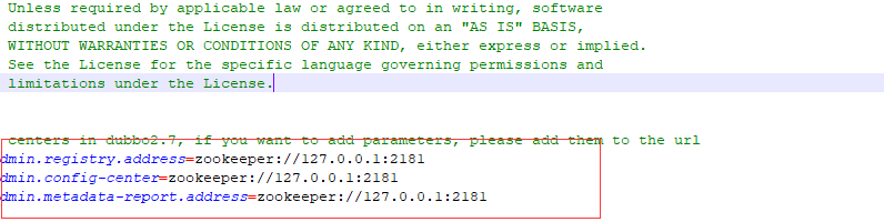 进入D:\dubbo-admin-develop\dubbo-admin-develop\dubbo-admin-server\src\main\resources下查看zookeeper的端口号2181,如果改动了,这里也要改
