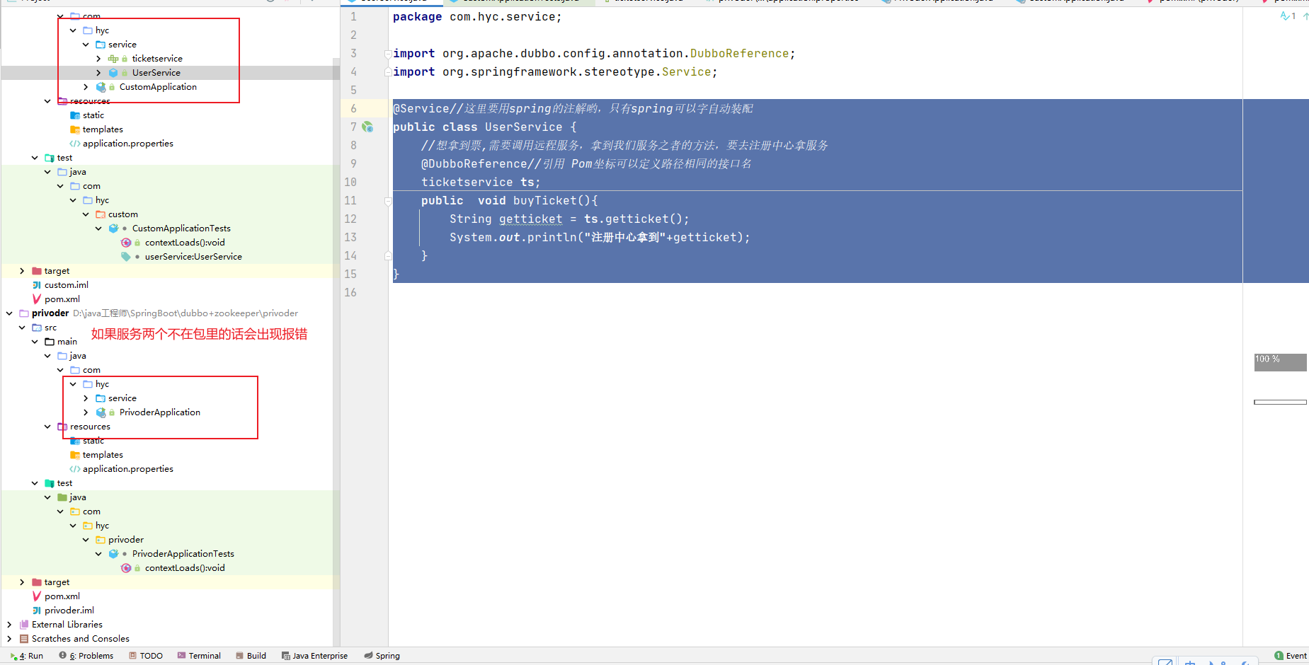 - 我们需要在客户端建立一个一样的服务者接口,直接远程注入就可以使用这个服务的方法了,远程调用注解@DubboReference
