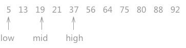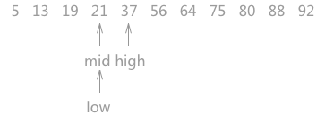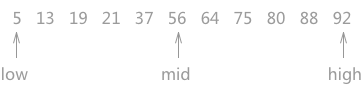 - 首先将数组对半分,判断目标值是在mid的左边,或者右边,或者等于mid值