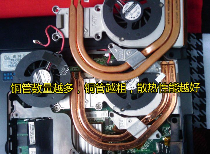 笔记本最少2根铜管散热,更好的3根、5根铜管散热。