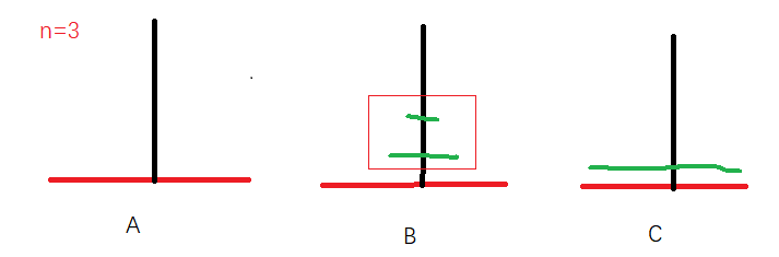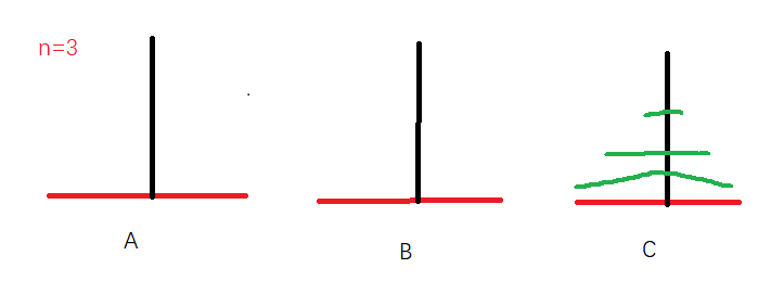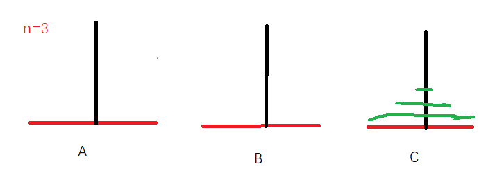 3. 函数作用:将 A 中的上面 n 个盘子挪到 C 中。